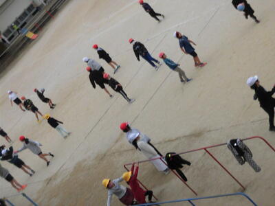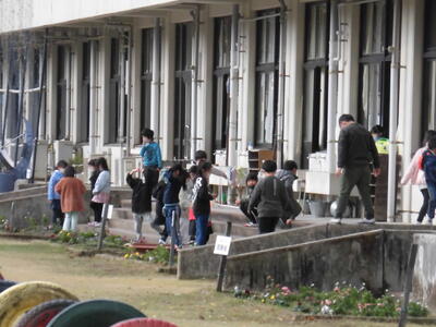 昼近くになって、陽射しが出てくると、2年生も教室から出てきました。