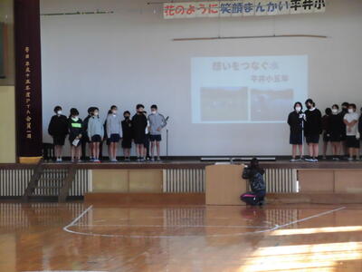 今朝の児童集会は、6年生の修学旅行報告でした。