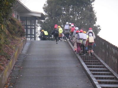 長い距離を歩いてきた後の、学校坂を駆け上る姿に、頼もしさを感じました。