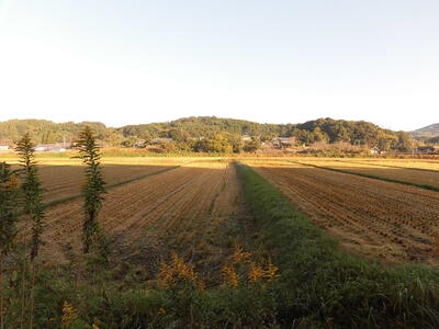 学校付近の田んぼは、すっかり稲刈りが済んで、うら寂しい秋景色です。