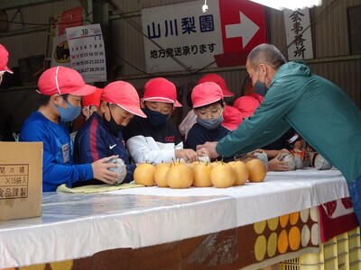 梨の収穫について体験的に学ぶためです。
