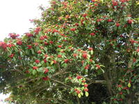 校舎をぐるりとまわると、赤い実、柿の実、かわいい花々!