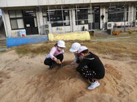 今日は、事務の戸上先生と用務員の西田さん、スクールサポートスタッフの松永さんに、土の準備をしていただきました。