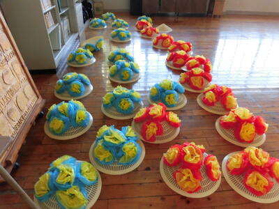 卒業式に飾る花の準備を始めました。