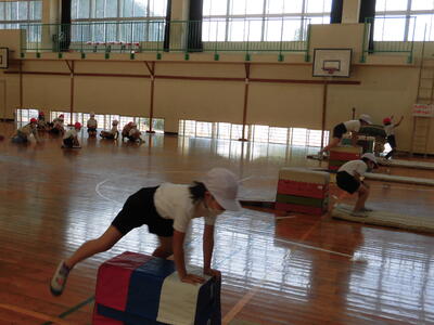 2年生は、跳び箱の挑戦していました。