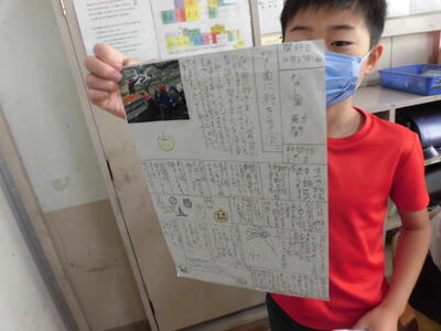 4年生が、見学旅行のまとめ新聞を作成していました。