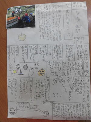 始業前、3年教室をのぞいてみると、「なし園新聞」を貼る姿が!