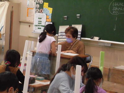 1年生で「Good morning everyone!」とあいさつしたら、すぐに「Good morning こうちょうせんせ~い!」とお返事が返ってきました!