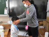 休み時間に地震対応の訓練をしました。