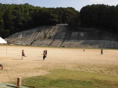 いつもは使わない運動場の真ん中で思いっきり遊んでいます。