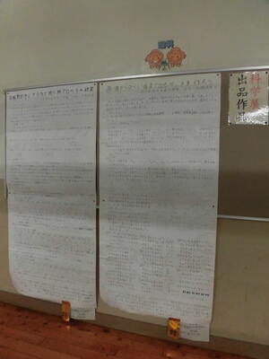 理科室付近の廊下には、科学研究の成果が展示してあります。