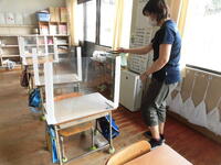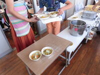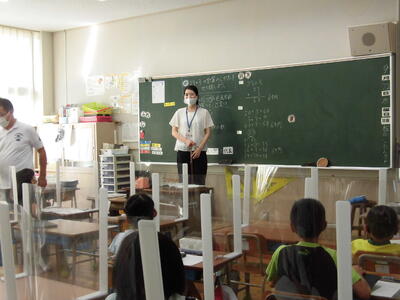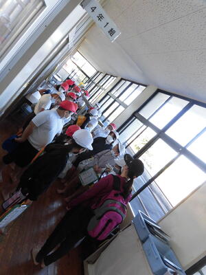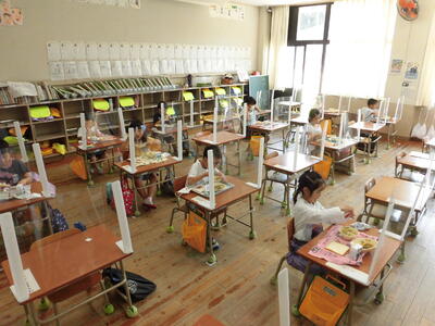 コロナ感染拡大対策で、給食は先生たちで配っています。