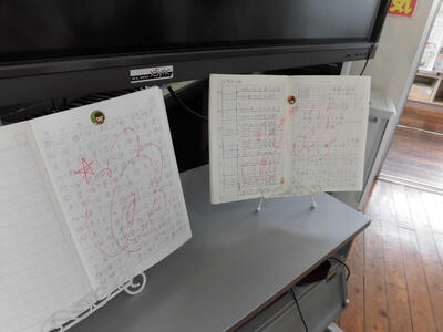 自学を頑張っている子のノートを三宅先生が飾ってくださっているのでしょうか。