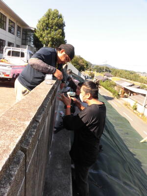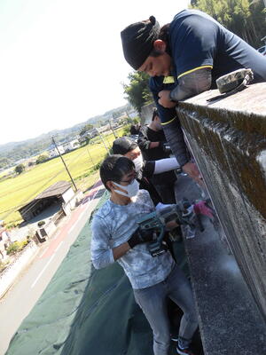 PTA会長を中心に、田中さん、大木さん、中村さん、土山さんが、学校の看板を設置してくださいました。