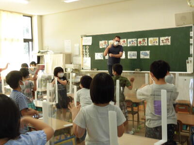 2年生も、アラン先生と「曜日」「天気」の学習をしました。