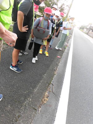 環境教育の一環で、5年生が関川の河川パトロールに出発します。