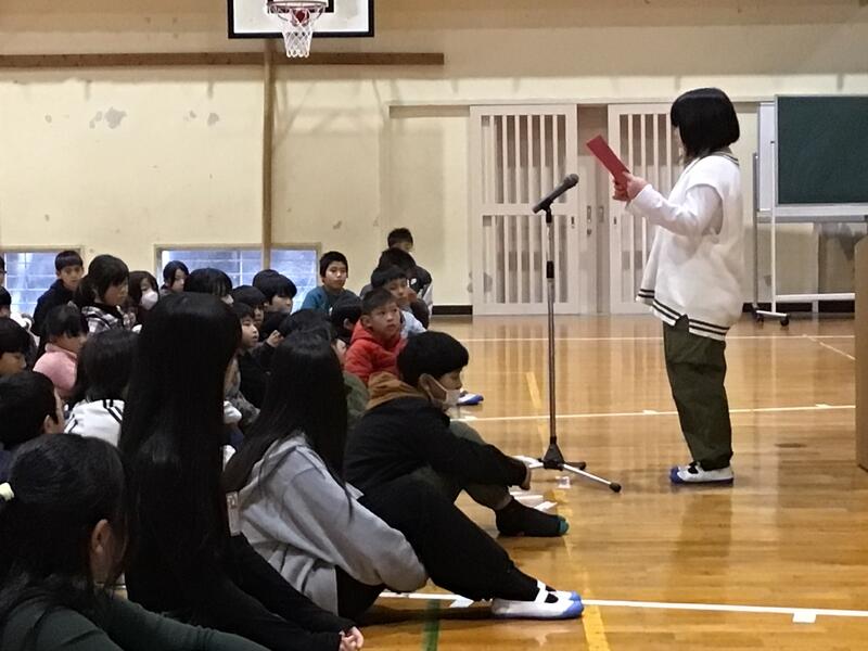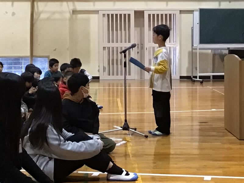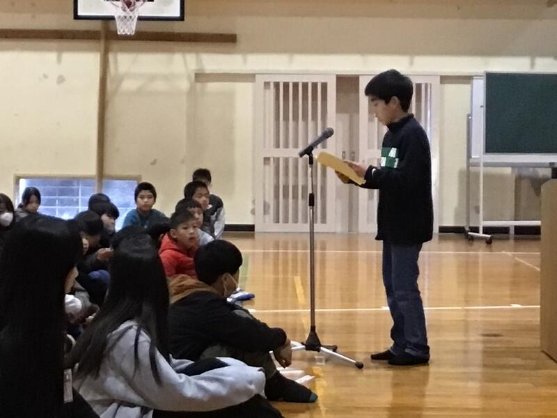 また、『あきらめようとしたけれど、もう少し頑張ろうと思ったこと』『これまで頑張ったことと新しい学年で頑張りたいこと』『6年間を振り返って』などについて、代表3名の子どもたちによる作文発表が行われました。これからに繋がる、素晴らしい振り返りとこれからの目標がつづられていて、感心しました。