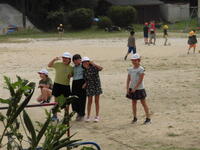 ドッヂボールをしている女の子たちが気づいて、ポーズを取ってくれました。