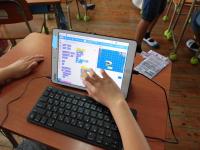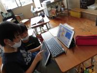 今日は、ICTサポート支援員の方に来ていただき、ゲームをプログラムする学習をしました。