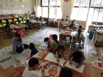 1年生の教室いっぱいに絵があふれていました。