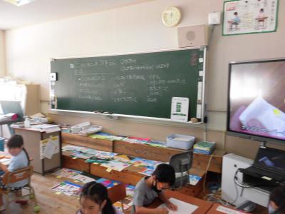 4時間目は、3年生と1年生が図書室に行きました。