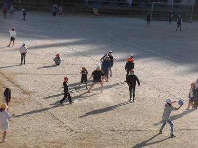 上から見ると。。。 投稿日時 : 2021/10/29 学校サイト管理者 10月29日(金) いつも同じ目線で見ている朝の運動場を、2階から見ると、少し違う感じがします。 でも、楽しそうな雰囲気は、同じです。 平和です!