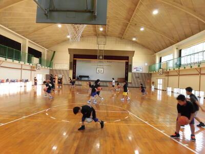 たくさんの子供たちがバスケットボールの練習中!
