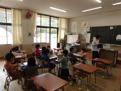 早く終わったグループは、2年生がお絵かきや読み聞かせをして、1年生を楽しませてくれていました。