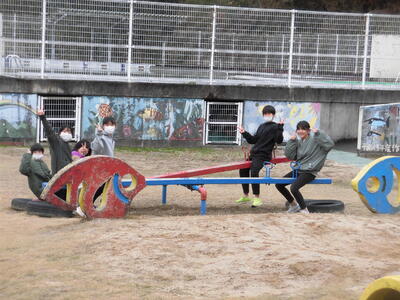 昼休み! 投稿日時 : 2024/01/10 学校サイト管理者 1月10日(水) 雨も上がって、気持ちのいい昼休みです。 シーソーで和んでいたかわいい6年生が、カメラに気づいて「イエ~イ!」とアピールしてくれました。 一輪車も大盛況です! なわとび大会に向けて、もう練習をスタートしている4年生達! 癒やされます。