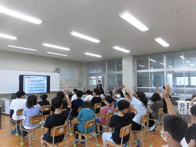 荒尾市の選挙管理委員会の皆さんが、選挙の目的や仕組み、意義について6年生に授業をしてくださいました。