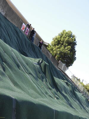 PTA会長を中心に、田中さん、大木さん、中村さん、土山さんが、学校の看板を設置してくださいました。
