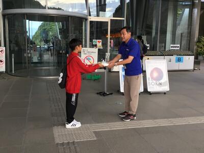 【自主制作した『荒尾市観光マップ』の謹呈】