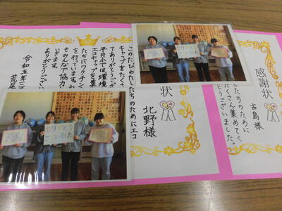 お届けします! 投稿日時 : 2023/03/22 学校サイト管理者 3月22日(水) 環境委員会の子供たちが、エコキャップをたくさん届けてくださった古島さんと北野さんに感謝状を書いてくれました。 遅れましたが、お届けに参ります! 本当に、ありがとうございました!
