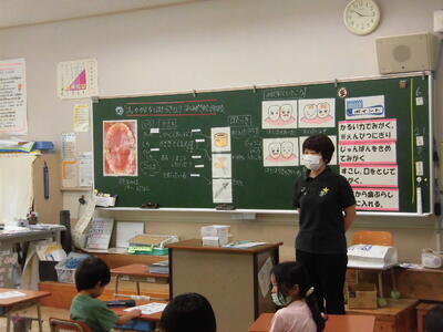 現在、学校では担任と養護教諭が協力して、歯を大切にする取組を行っています。