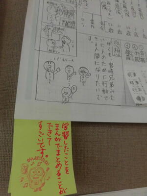 温かい言葉! 投稿日時 : 2021/11/11 学校サイト管理者 11月11日(木) 子供たちの学びを大切にする先生たちです。 1日中忙しく動き回って、夜遅くまで頑張っていただいています。(申し訳ありません) そんな中、子供たちの作品のすべてに温かい言葉を添えてくれます。 心から感謝しています。