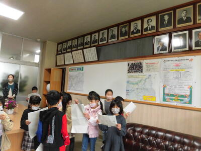 2年生は、「学校探検」で1年生に教えるために、校長室に事前調査に来てくれました。