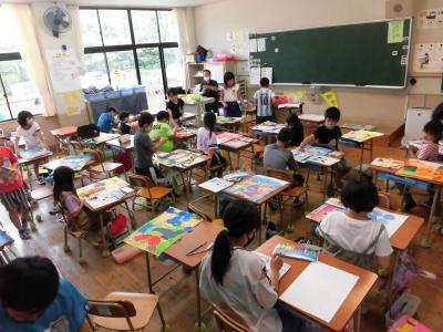 午後は、図工。絵の具の混ぜ方や筆のタッチを工夫していました。