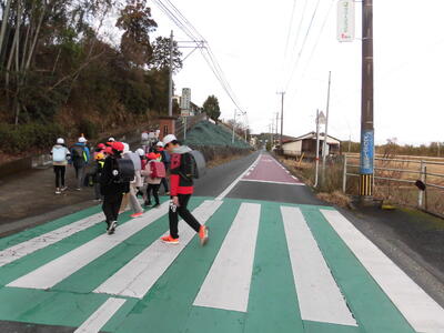 朝焼けの中を、子供たちが元気に登校してくれました。
