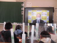給食センターの徳永先生に、給食の作り方や栄養のバランスのことなどについて、分かりやすく教えていただきました。