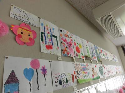 1年生教室には「すきなもの いっぱい」の絵が掲示してあります。
