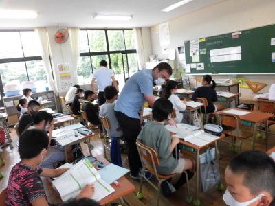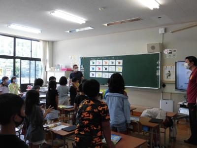 3年生は、アラン先生と教頭先生の指導の下、外国語活動に取り組んでいました。