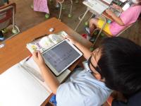 荒尾市では、タブレットをすべての児童に1台ずつ提供し、学習の充実に活用しています。