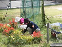 先生たちは、学習会の後で花壇の草取りをしたり水まきをしたりと、環境の維持に汗をかきました。