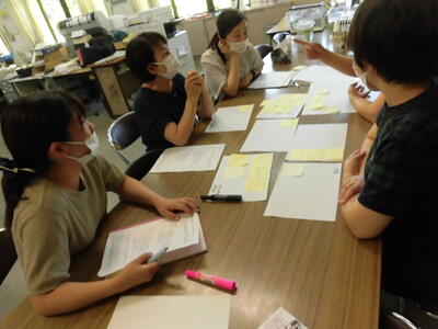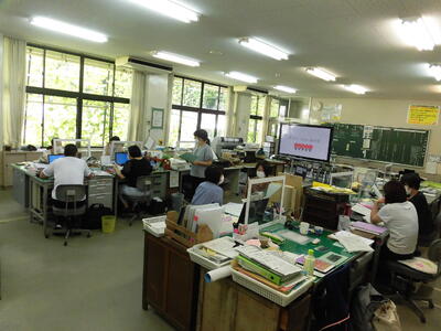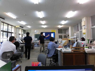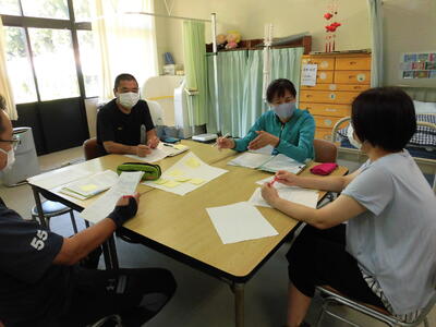 子供たちが帰った後、前期前半の授業を振り返る研修をしました。