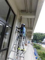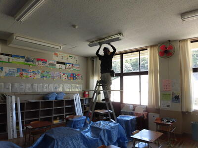 夏休みの期間中、学校のすべての電灯をLEDに交換する工事をしています。