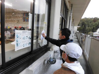 6年生が、学校への感謝の思いを込めて、学校中の窓という窓を拭いてくれています。