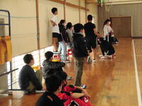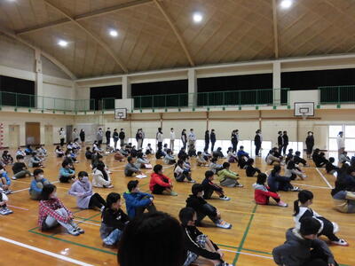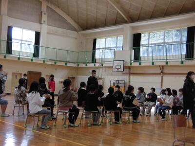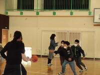 体育館では、6年生がキャーキャー言いながらバスケットを楽しんでいました。