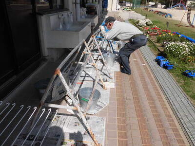 助丸の古嶋さんが、「雑巾の物干しを塗ってあげるよ」と、来てくださいました。