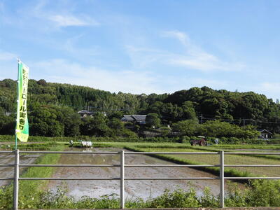 残りの田の2枚は、朝早くから田植えの準備が進んでいました。