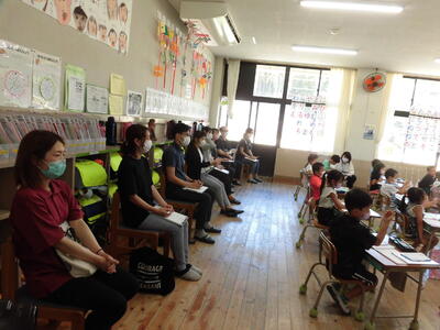 5時間目に、1年生が卒園した幼稚園・保育園の先生方に来ていただき、授業参観をしていただきました。